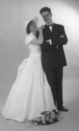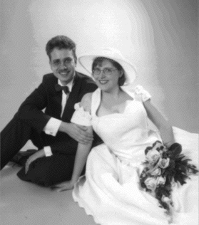 Originally, I wanted to make a nice web presentation and link to lots of background information etc, but I never seem to find the time for that, so here's the "well, it's better than nothing" solution: Four scanned pictures, three of the two of us and one of the wedding guests.